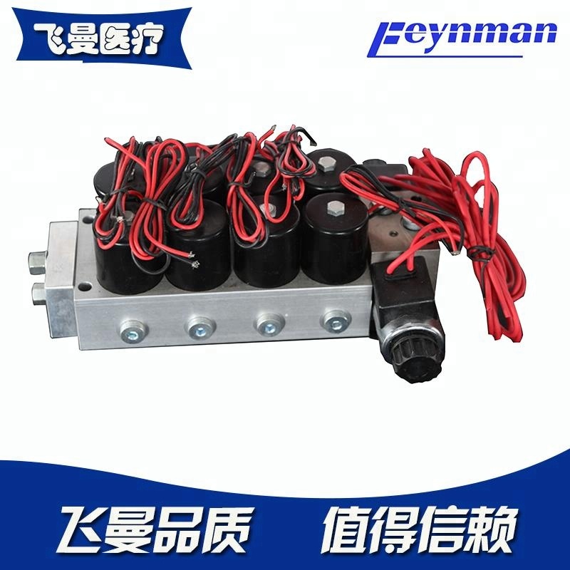 The solenoid valve block is suitable for hydraulic systems and is suitable for any brand of operating tables and can be grouped according to customer requirements. One group, two groups, four groups, five groups, etc.